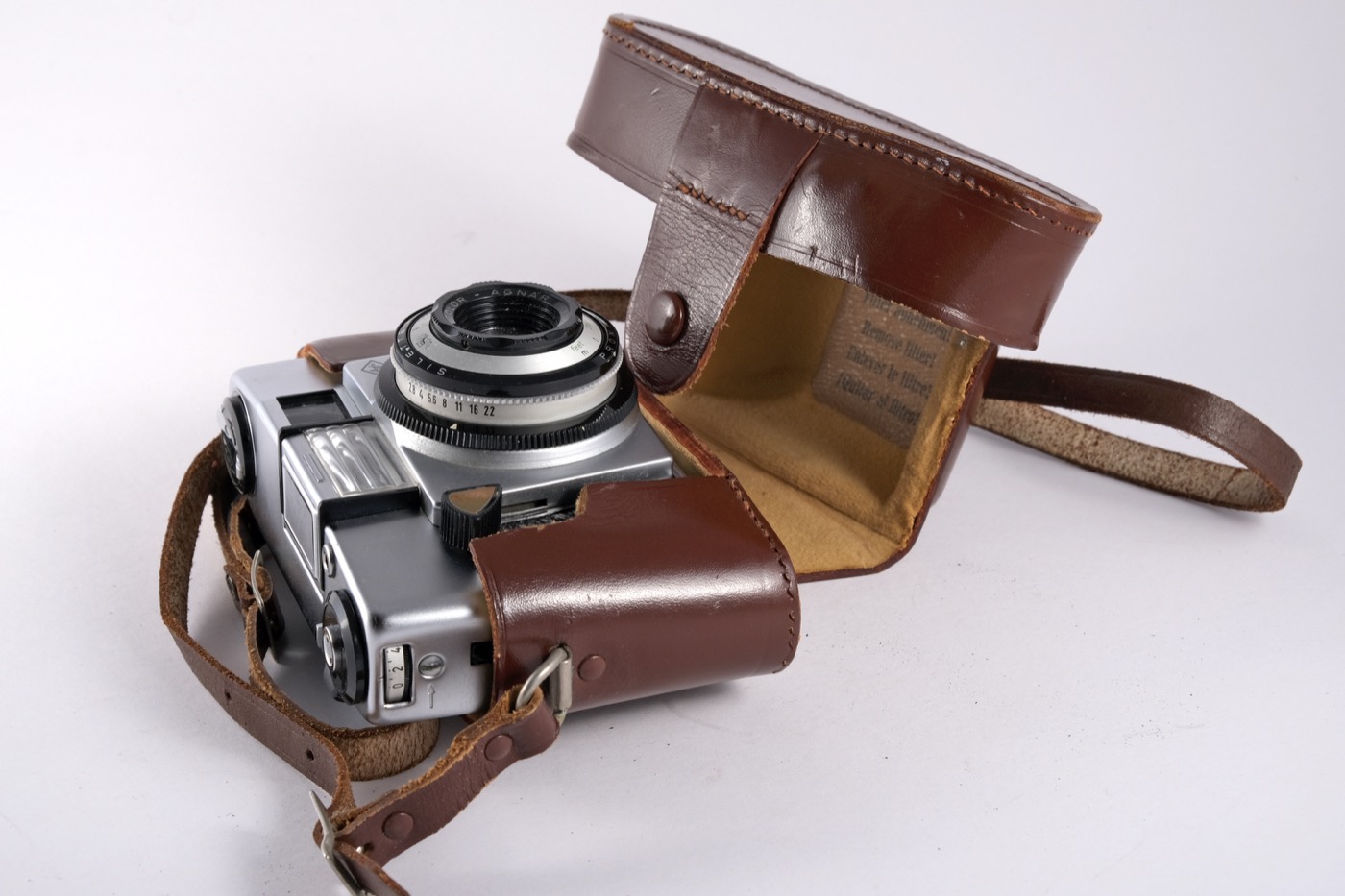 Agfa Silette-F 35mm rangefinder film camera with Prontor 45mm f/2.8 lens. The camera dates from around 1963.