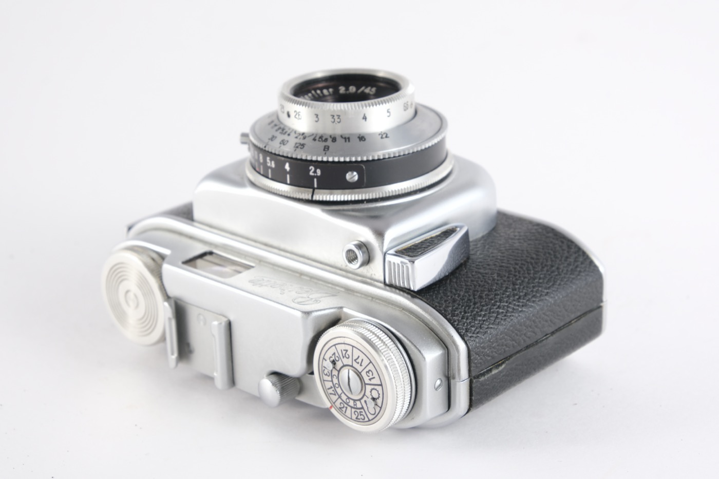This is a lovely little 35mm camera in its original leather case. Its a simple compact camera from the former East Germany, with a 45mm lens and shutter speeds ranging from 1/30th to 1/125th second plus B.