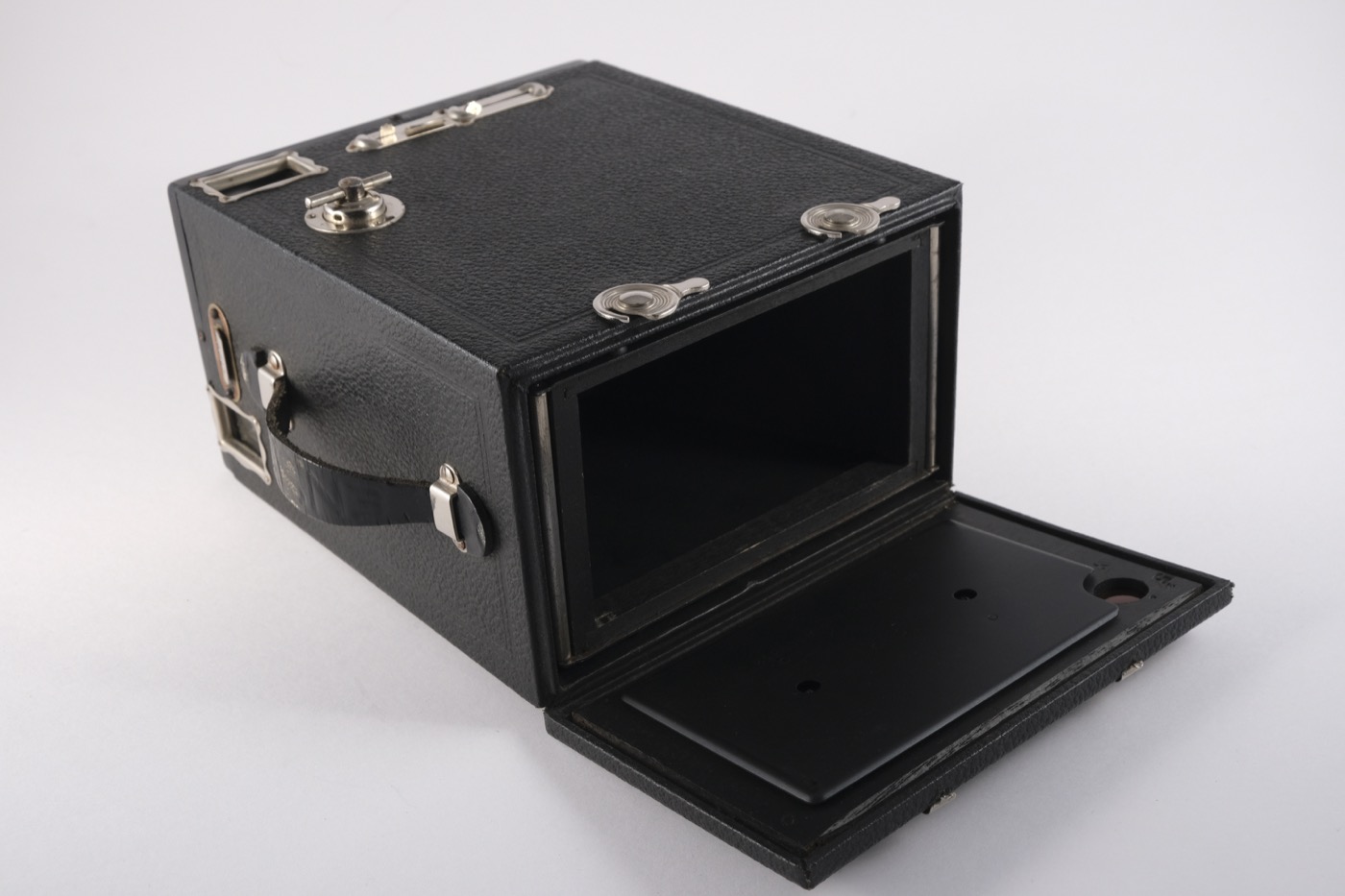 This is a Barnet Ensign Ful-Vue camera dating from 1946. The inner part of the camera is fixed to the side panel with the film winding knob. The whole …