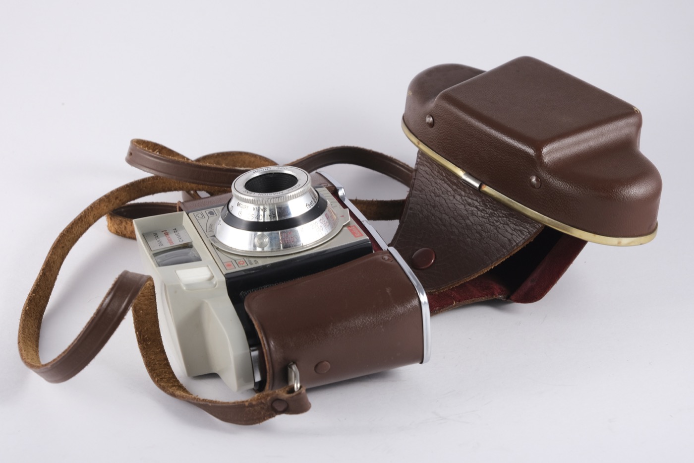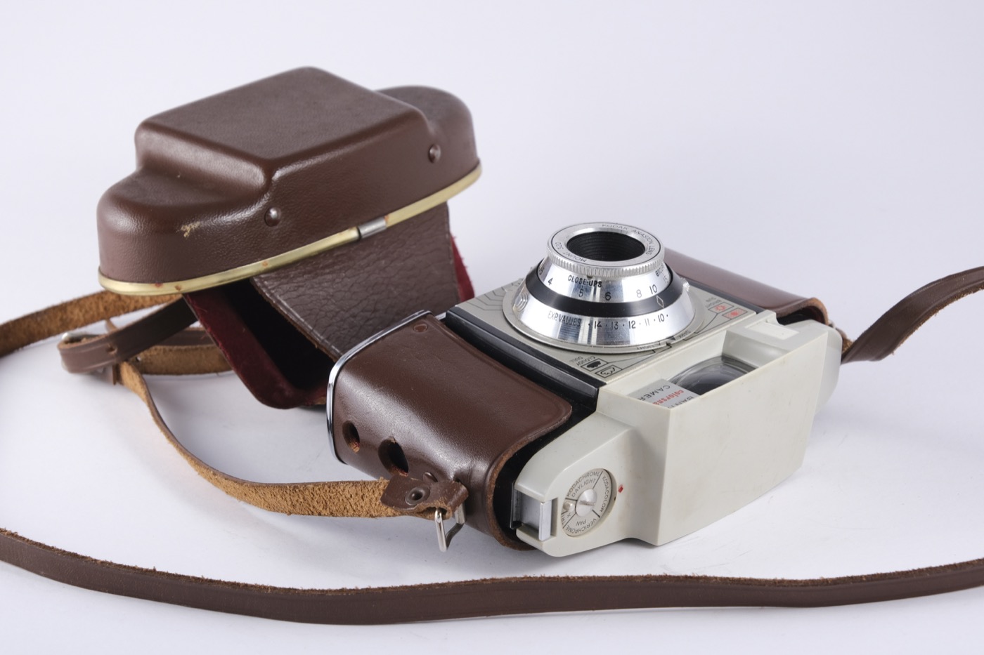 Kodak Bantam Colorsnap 3 film camera in leather case.