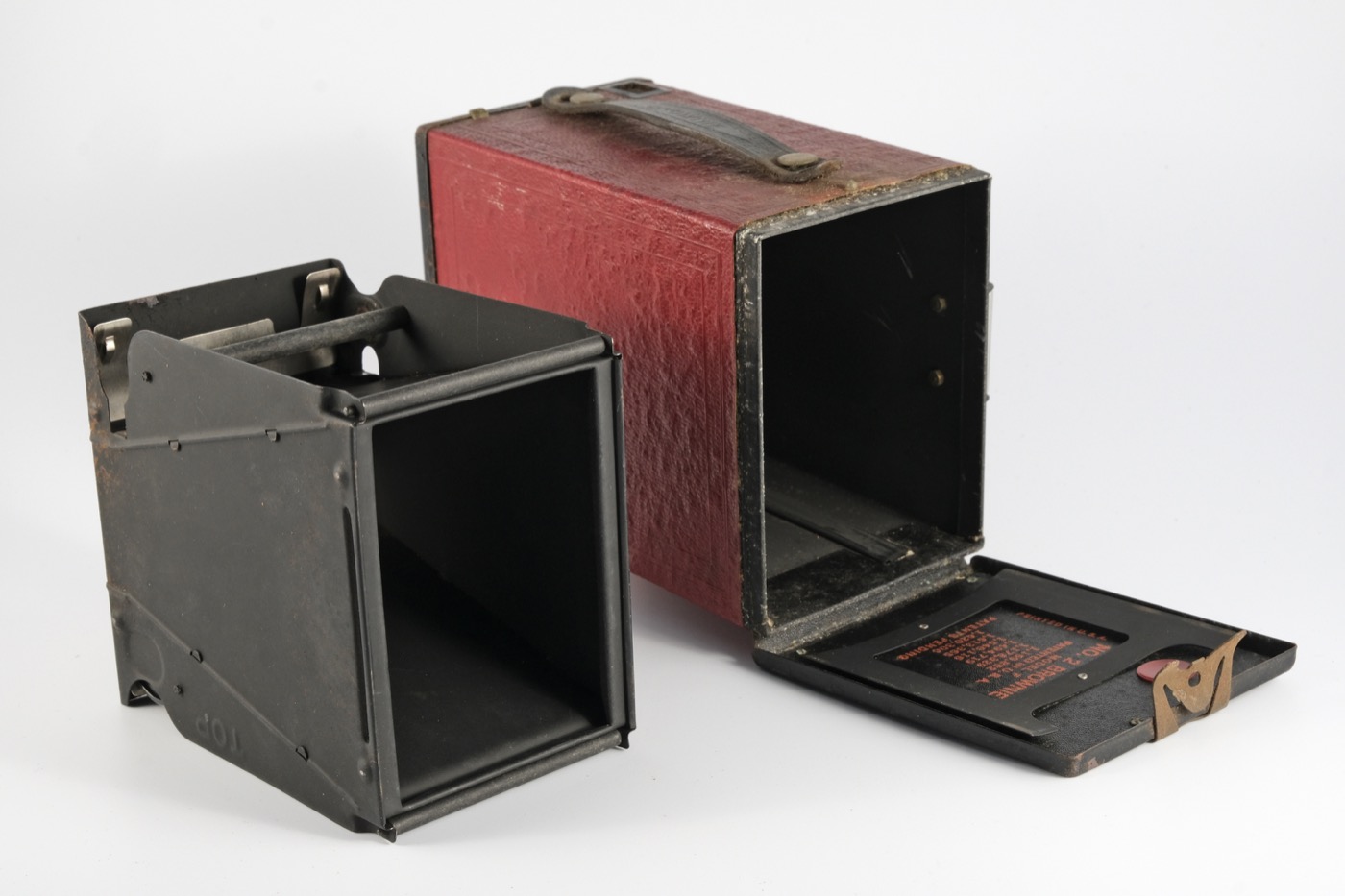This is a British Model F, dating from 1929-1933. This model has two innovations that make it particularly valuable/useful: it takes 120 film which is widely available (earlier versions took 116 film which is obsolete) and it has a tripod bush. This camera also has a pop-up finder installed. So far as I can see this was added later and was not part of the original camera.