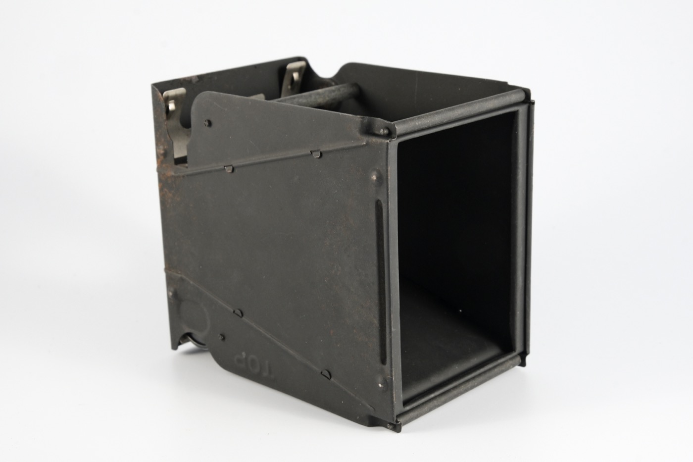 The No.2 Brownie is a simple box camera with a very dependable shutter. It has two sliding mechanisms on the top, one for a bulb, or time setting, and the other for a choice of 3 apertures. It also has two small reflecting finders for vertical or horizontal shots.