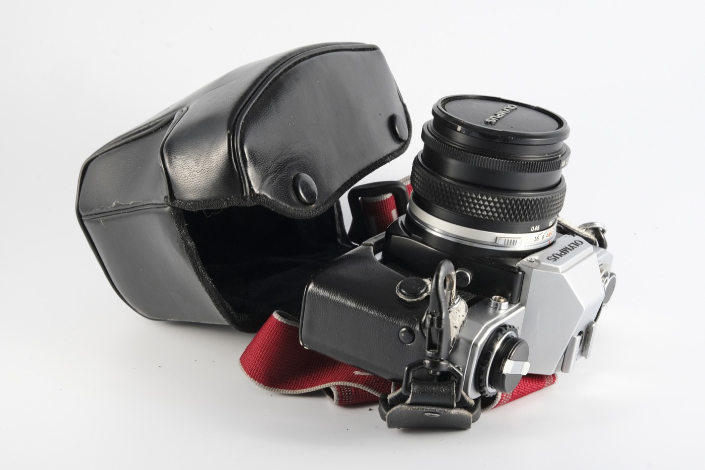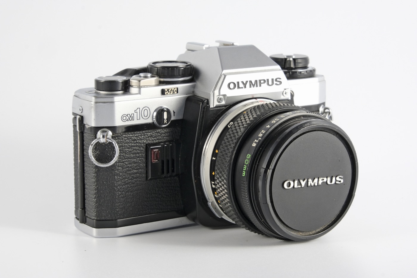 This is a vintage Olympus OM-10 35mm film camera dating from 1979. The OM-10 is a manual focus, aperture-priority camera. That means, you’re in charge of focusing and choosing the aperture setting, and the camera figures out what the shutter speed should be. If you’re hunting for a first SLR camera, there’s probably no bigger bang-for-the-buck than an Olympus OM-10. It comes with an excellent Zuiko 50mm f/1.8 standard lens.
