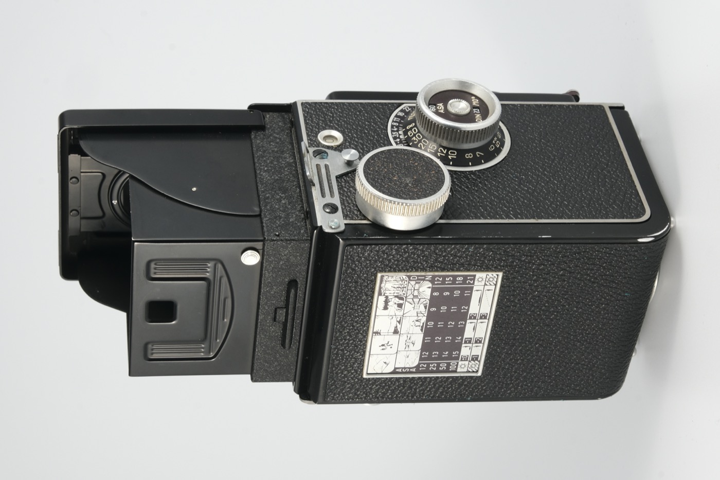 The Rolleicord is a medium-format twin lens reflex camera made by Franke and Heidecke (Rollei) between 1933 and 1976. It was a simpler, less expensive version of the high-end Rolleiflex TLR, aimed at amateur photographers who wanted a high-quality camera but could not afford the expensive Rolleiflex.