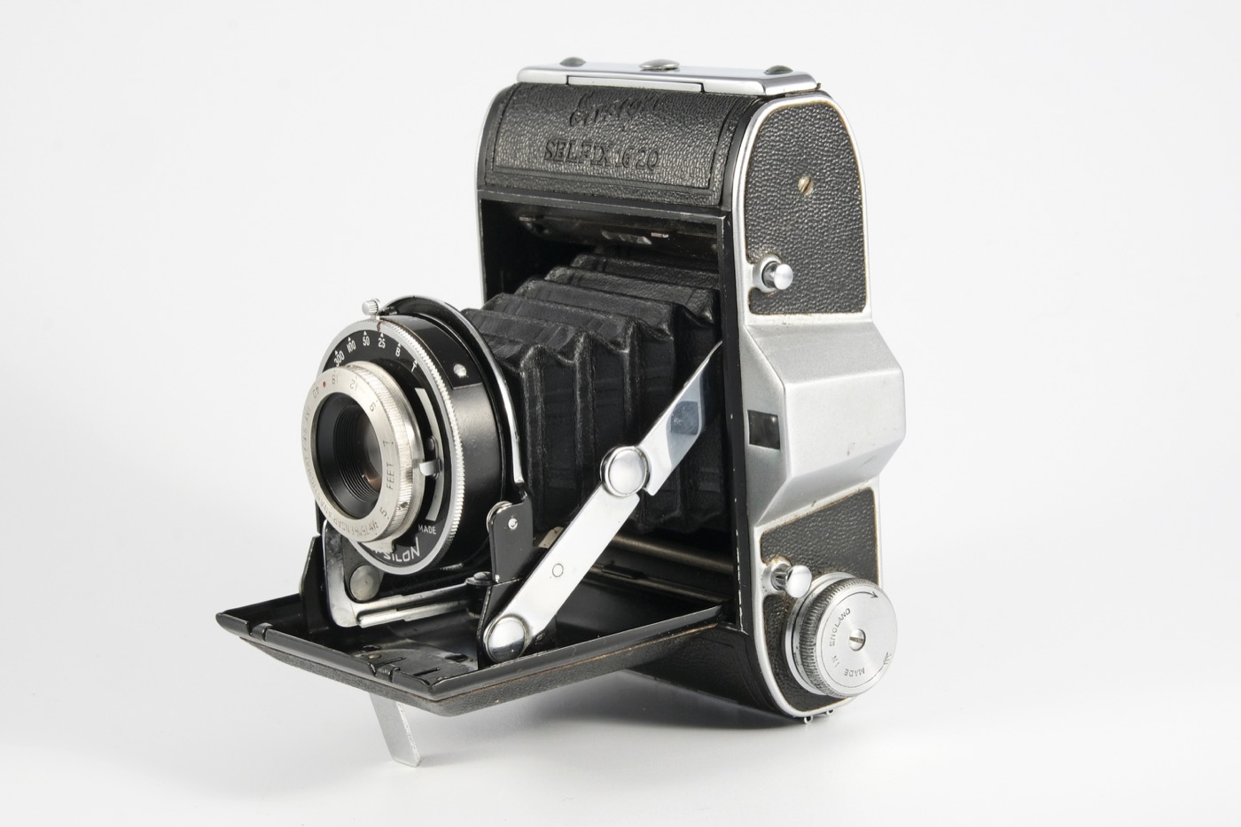 This is very light and compact for a 120 film camera - when folded it is small enough to fit into a coat pocket. It is a great folding camera from the 1950s, aimed at the serious amateur.