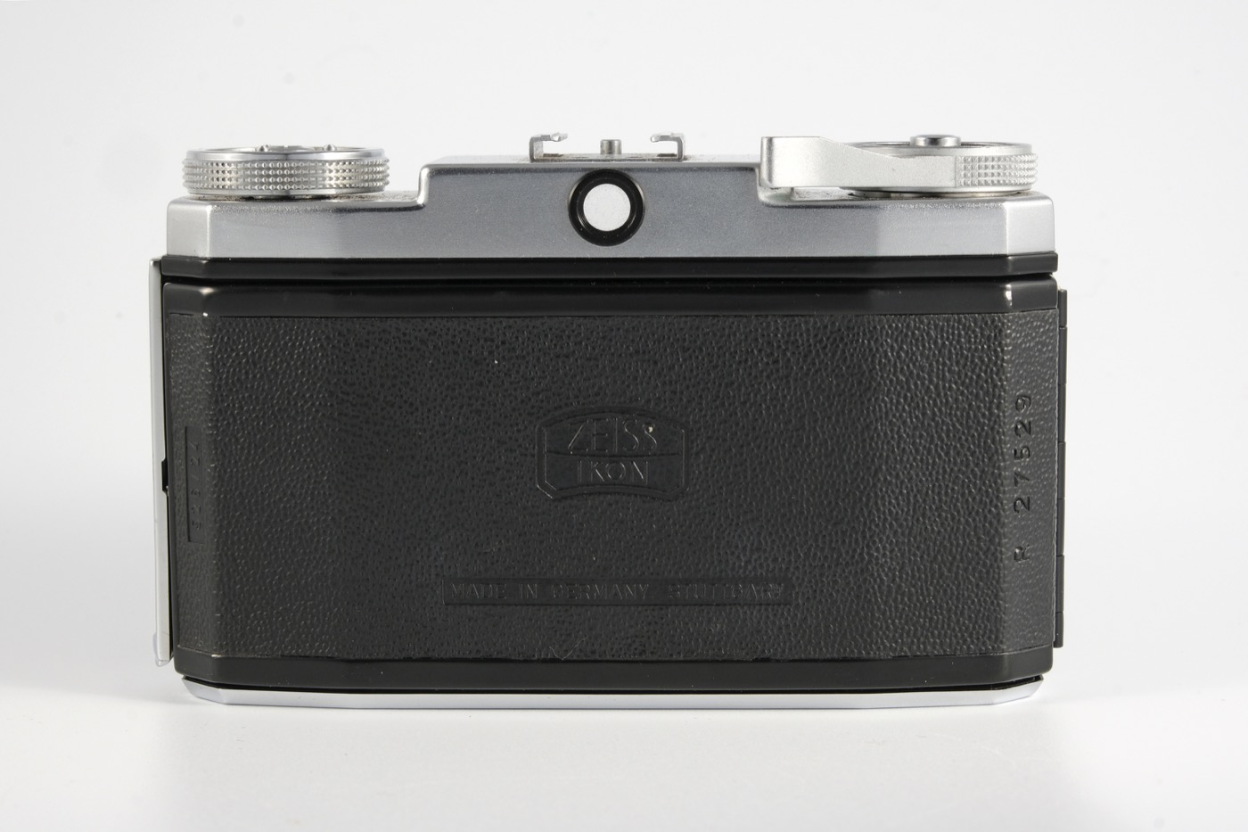 This is a lovely Zeiss Ikon Contina 35mm film camera, model Ib dating from around 1956. The lens is a Novicar anastigmat 45mm f/2.8 in a Prontor SVS shutter.